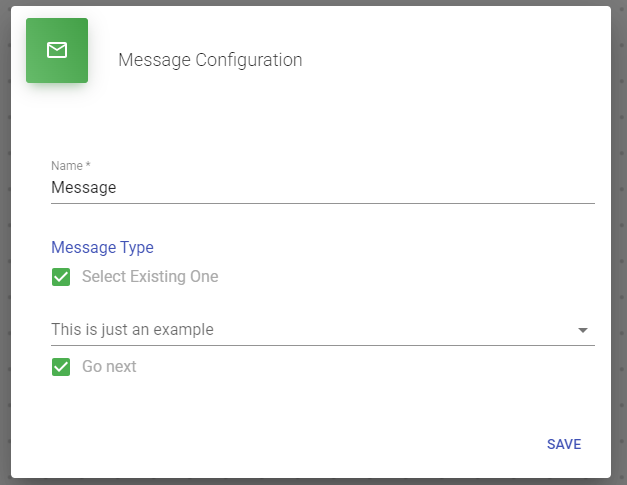 Aquí estamos visualizando la pantalla del nodo de mensaje donde tenemos dos campos y un selector. Vamos a explicar para qué sirven.