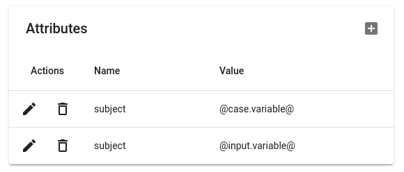 Atributos: Aquí podemos llamar variables que ya tenemos definidas en nuestro flujo. Podemos usar variables definidas en nodos de Entrada o Caso. Aquí le mostraremos un ejemplo.