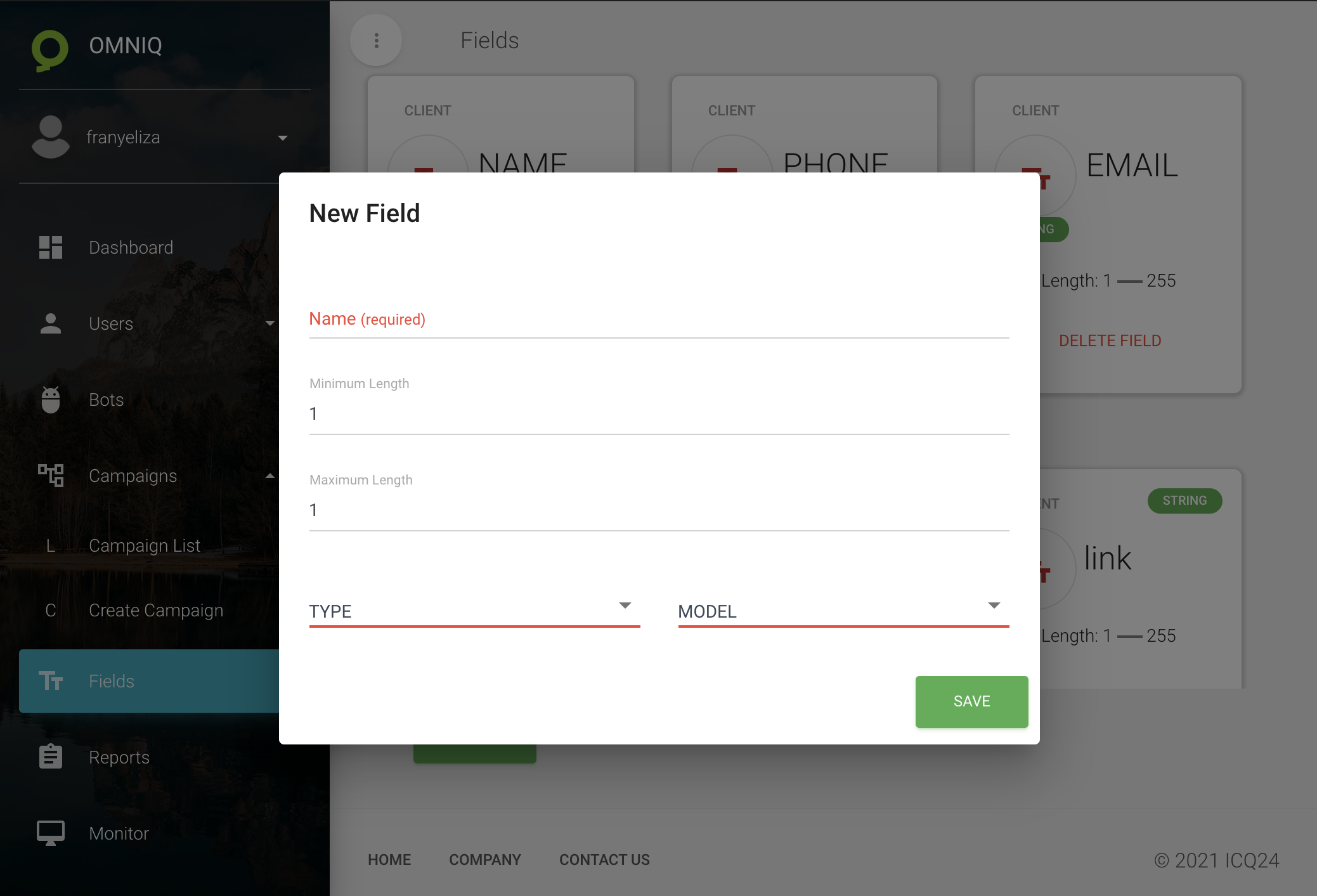 A continuación se muestra el formulario que se debe llenar para crear un campo.